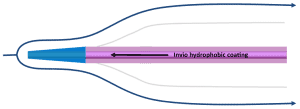 Invio hydrophobic coating is a water-repelling, slippery coating that reduces guidewire friction