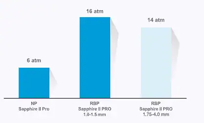 The small size Sapphire II PRO has a single-material tip for a simpler construction. The shorter tip facilitate better tracking. And the low tip entry profile is engineered for very tight lesions