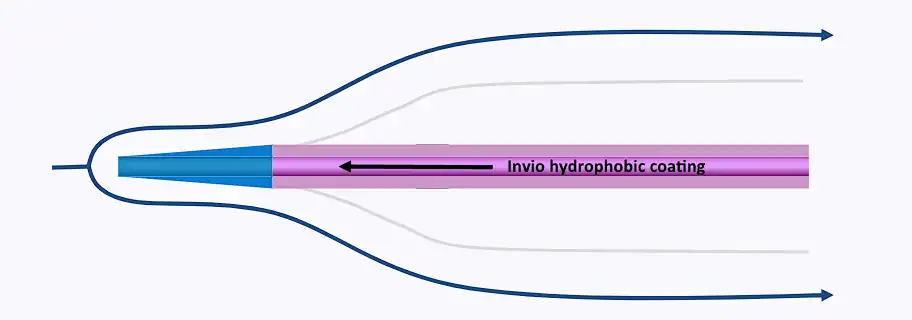 Invio hydrophobic coating is a water-repelling, slippery coating that reduces guidewire friction