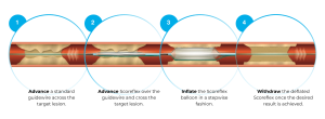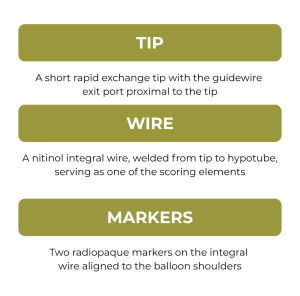 Scoreflex is a focused force dilatation balloon with a dual-wire system which creates a focal stress pattern to facilitate safe and controlled plaque modification at lower resolution pressure.